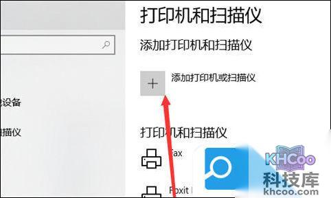 4、接着,在打印机界面,点击添加打印机和扫描仪的加号图标。