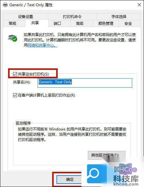 5. 接下来勾选“共享这台打印机”,并点击“确定”按钮;