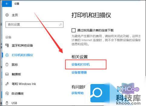 4. 随后在“打印机和扫描仪”选项,在右栏中找到“ 设备和打印机 ”选项,点击并进入;
