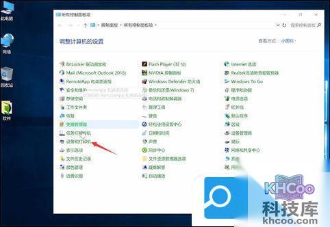3、在查看方式小图标模式下点击设备和打印机;