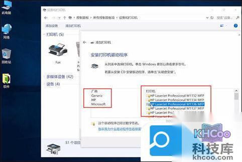 7、待检测驱动程序型号完成,选择打印机厂商和打印机型号,下一步;