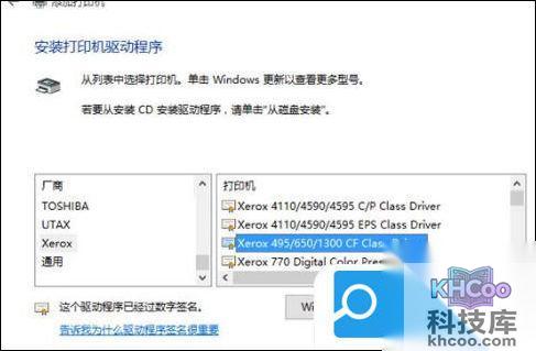 5.然后我们选择打印机厂商及相对应的型号,若没有我们可使用打印机附带的磁盘来进行安装;