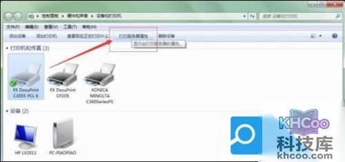 7. 服务重启完成后,用打印机重新打印,如果上述方法仍不能打印,则右击打印机图标,选择出现的打印服务器属性;