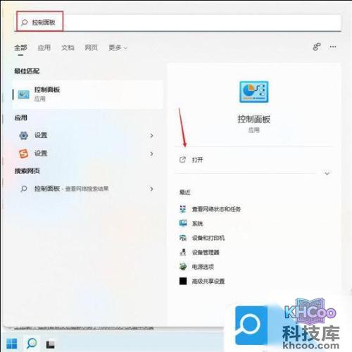 2. 打开win11电脑的搜索框,搜索控制面板并打开;