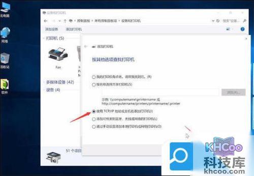 5. 选择使用TCP/IP地址和主机名添加打印机,下一步;