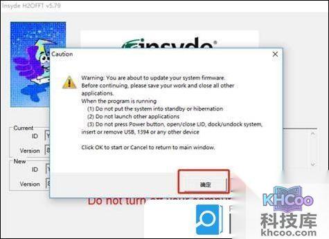 13、升级工具弹出提示BIOS升级风险说明,点击确定进入下一步