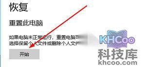 4、在恢复里面找到 重置此电脑 点击 开始 就可以恢复出厂设置了。