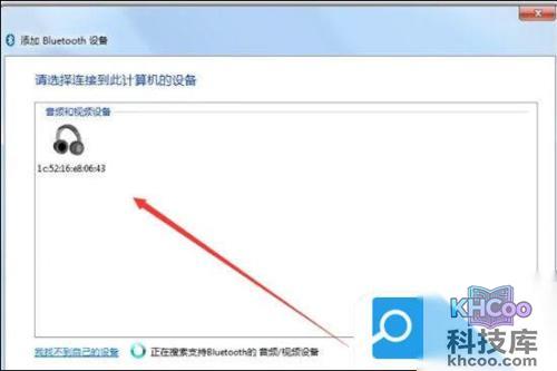 6. 点击搜索,这个时候把蓝牙耳机打开并处于连接状态,然后就可以在电脑上找到对应的蓝牙耳机了。