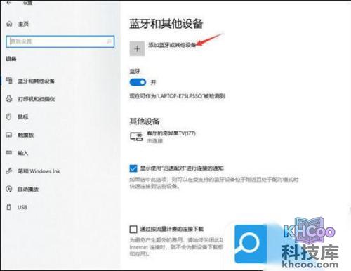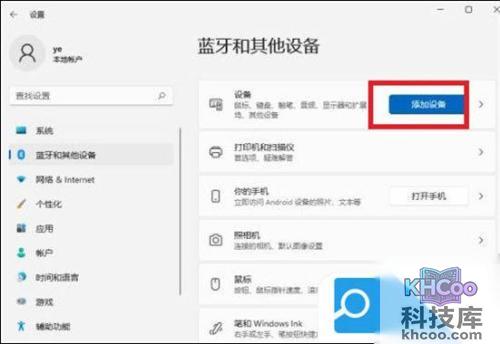 3. 右侧点击“添加设备”,添加蓝牙或其他设备。