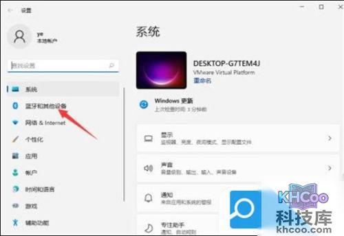 2. 左侧点击“蓝牙和其他设备”选项。