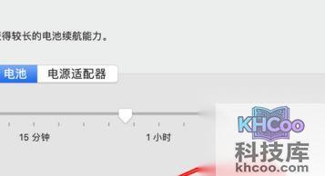 3、在电池选项下把中间白色的三角形拖动至需要的时间即可设置自动黑屏时间。