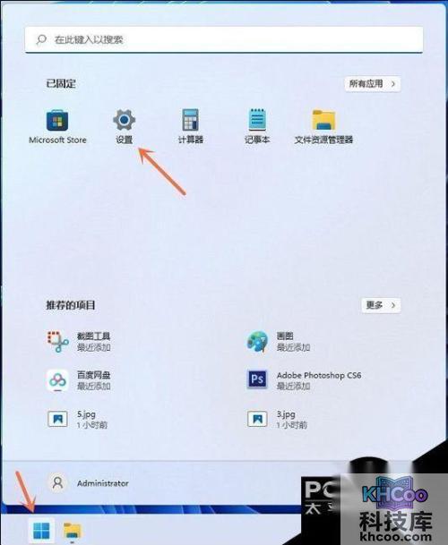 1. 点击左下角 任务栏 中的“开始”,选择菜单列表中的“设置”。