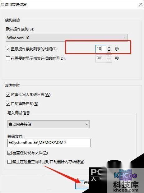 6. 上述操作完成后,点击“显示操作系统列表的时间”设置中,时间修改为10秒,最后点击“确定”这时win11双系统引导设置就完成啦。