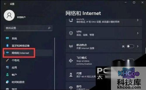 打开后,在左侧选择网络和Internet选项,再在右侧的最下方找到高级网络设置。