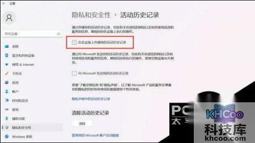 3. 取消勾选“在此设备上存储我的活动历史记录”即可。