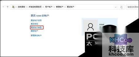 3. 选择要更改的账户,然后点击更改账户类型。