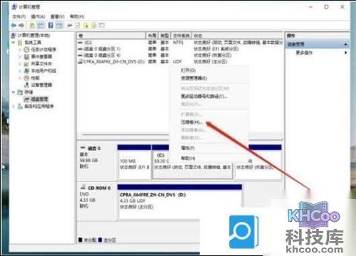 3、然后用鼠标右键选择要分区的磁盘c盘,选择压缩卷打开。