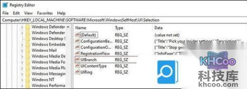2、定位到这个位置“HKEY_LOCAL_MACHINE\SOFTWARE\Microsoft\WindowsSelfHost\UI\Selection”。