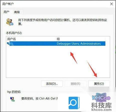 2、选择你要修改的账户,点击属性,如下图所示。