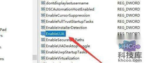 3、找到enablelua注册表键值