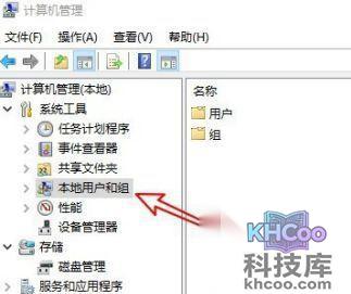 2、在" 计算机管理 "窗口中,我们必须迅速定位到左侧列表中的“ 本地用户和组 ”关键设置项。