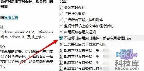 6、然后我们在右侧打开的窗口中找到不论何时启用实时保护,都会启用进程扫描。