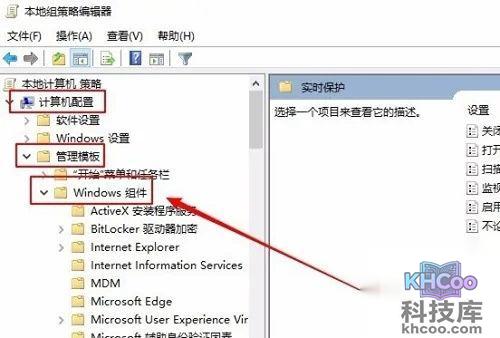 4、这个时候我们就会打开windows10的本地策略编辑窗口,来到这个界面以后我们一次点击左侧的计算机配置中的管理模板,在点击windows组件的选项。