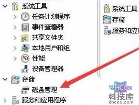 2、然后我们在打开的计算机管理界面中,点击左侧界面中的磁盘管理。