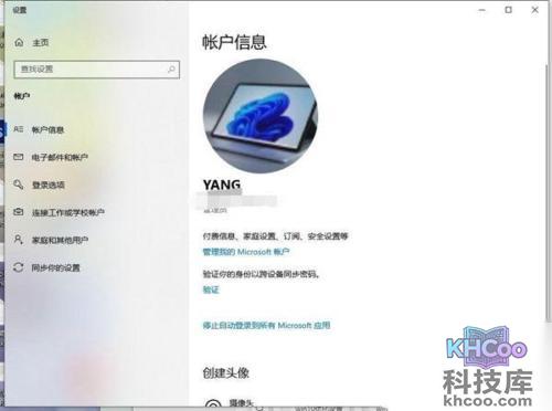 2、点击以后会出现账户选项,我们选择其中的更改账户设置然后再次选择创建您的头像。