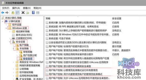 4、同样,将【 用户账户控制:用于内置管理员账户的管理员批准模式 】的选项也设置一下。