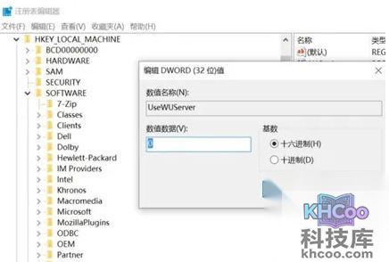 2、定位到:HKEY_LOCAL_MACHINE\SOFTWARE\Policies\Microsoft\Windows\WindowsUpdate\AU 并把usewuserver的值改为0确认