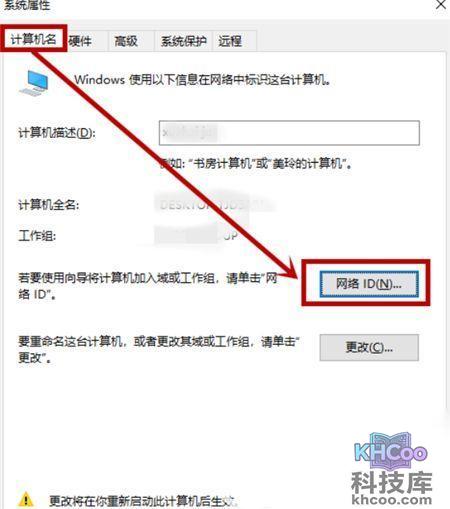 3、在新弹出的【 系统属性 】窗口中,点击【 计算机名 】选项卡中的【 网络ID 】选项。