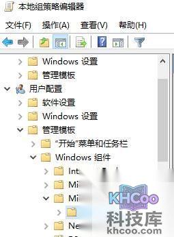 2、在左侧栏依次展开:用户设置—管理模板—Windows组件—mircosoft管理控制台—受限的/许可管理单元。