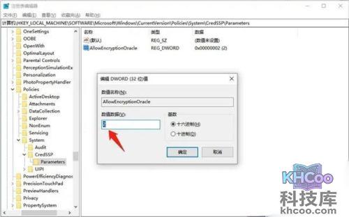 5、随后我们双击之前创建的AllowEncryptionOracle,将他的数值改为2即可。