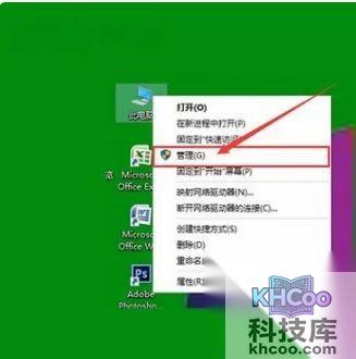 在桌面上的“ 此电脑 ”图标上再次单击右键,选择“管理”选项,从而打开“计算机管理”窗口。