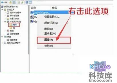 6、在右侧找到并右击“ Administrator ”项,选择属性。