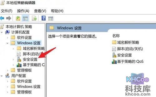 4、我们在安全设置下方,选择本地策略,然后再双击打开安全选项。