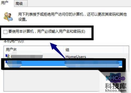 3、 在随后弹出的用户账户窗口中,取消勾选“要使用此计算机,用户必须输入用户名和密码”选项。