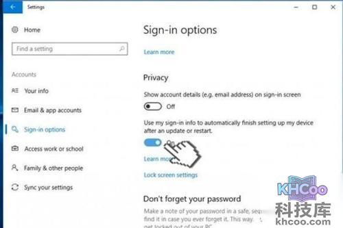4、最后我们关闭使用我的登录信息在更新或者重启电脑,所有设置完成后即可自动完成设备重置,然后重启电脑。