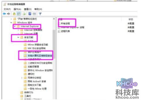 4、全部打开以后点击Internet Explorer,其中的安全功能中的本地计算机区域锁定安全。