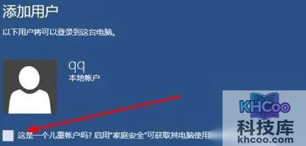 5、最后在弹出的窗口中勾选儿童账户即可。