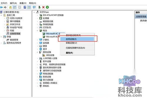 3、然后我们再次打开点击启用该设备,启用完成以后,我们的电量图标就会显示在任务栏中了。