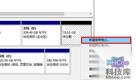 5、右键未分配的空间,然后选择“新建简单卷”