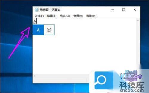 2. 然后按下键盘上上的“caps lock”键,输入法的图标变为“A”,说明切换到了英文大写状态,此时输入的字母都是大写英文字母,再次按下“caps lock”键就可以切换回小写;