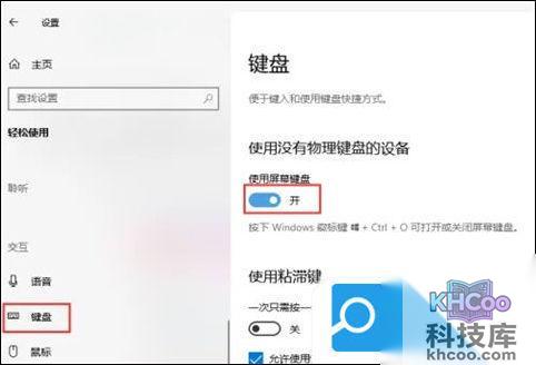 2、将窗口切换到“键盘”,开启“使用屏幕键盘”win10软键盘会自动跳出来。