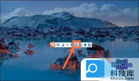 2、在桌面右下角可以看到有一个键盘标志,点击一下就可以打开win10软键盘。