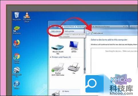3、点击"添加设备"。这个链接位于设备和打印机窗口的左上角。
