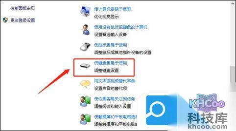 4、选择“使键盘更易与使用”选项,如下图所示:
