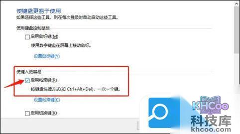 5、取消“启用粘滞键”的勾选项即可,如下图所示: