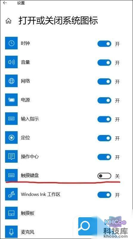 3. 点击“显示触摸键盘按钮”选项后,右下角出现了一个键盘的图标;